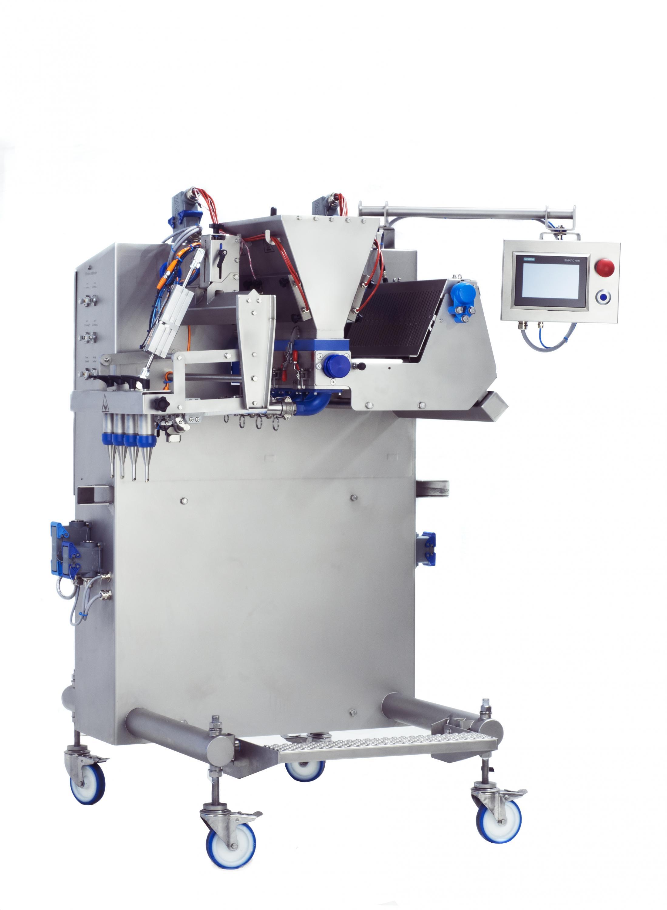 The multispot depositor can be integrated into an existing line and is suitable for dosing products varying in viscosity. For example, whipped cream, fruit fillings and creams can be dosed easily and with a high capacity.