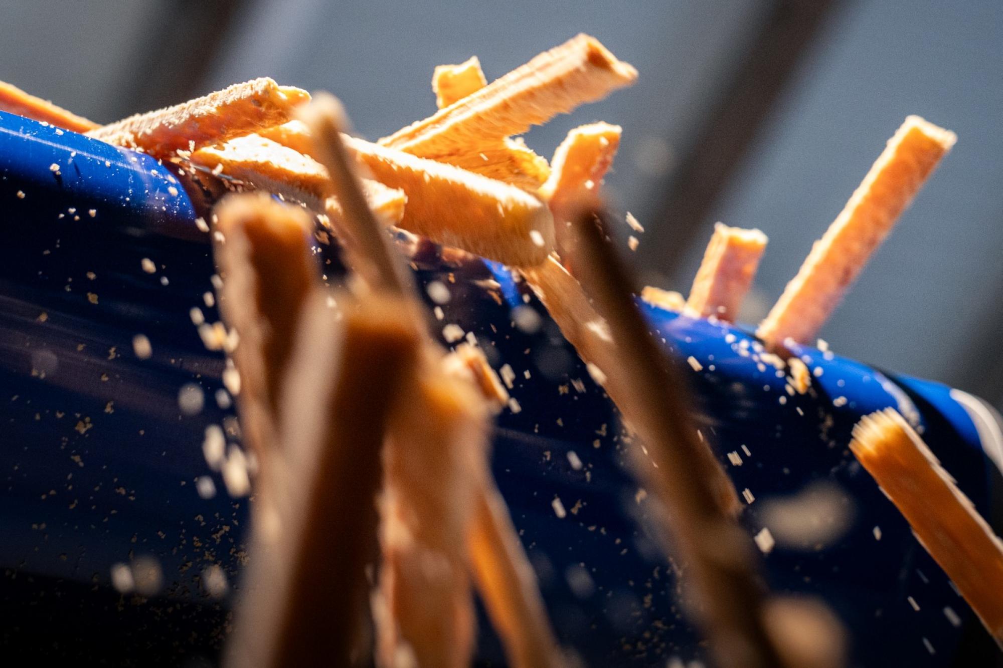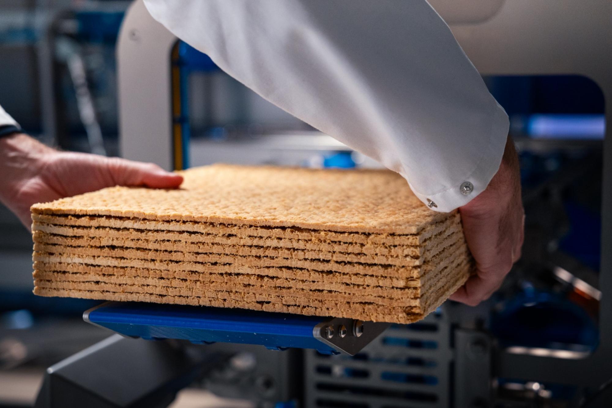 De korstplakkensnijder automatiseert het snijden van rechte snedes en levert korstplakken met een constante afmeting.
